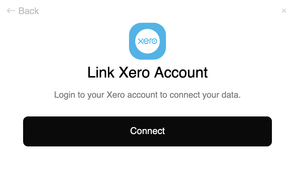Click the Connect button to begin the authentication process with Xero.